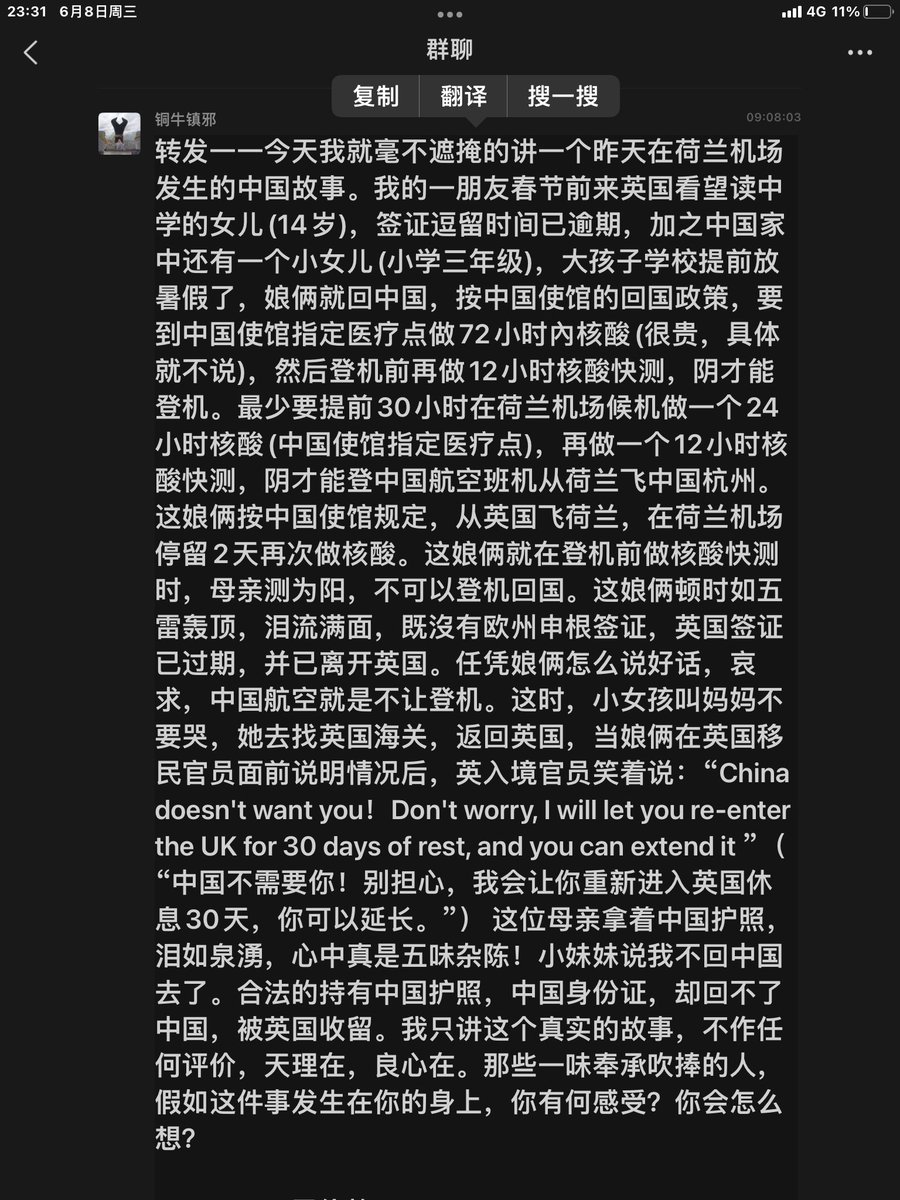 中国式抗疫精神病?转【荷兰机场发生的中国故事】