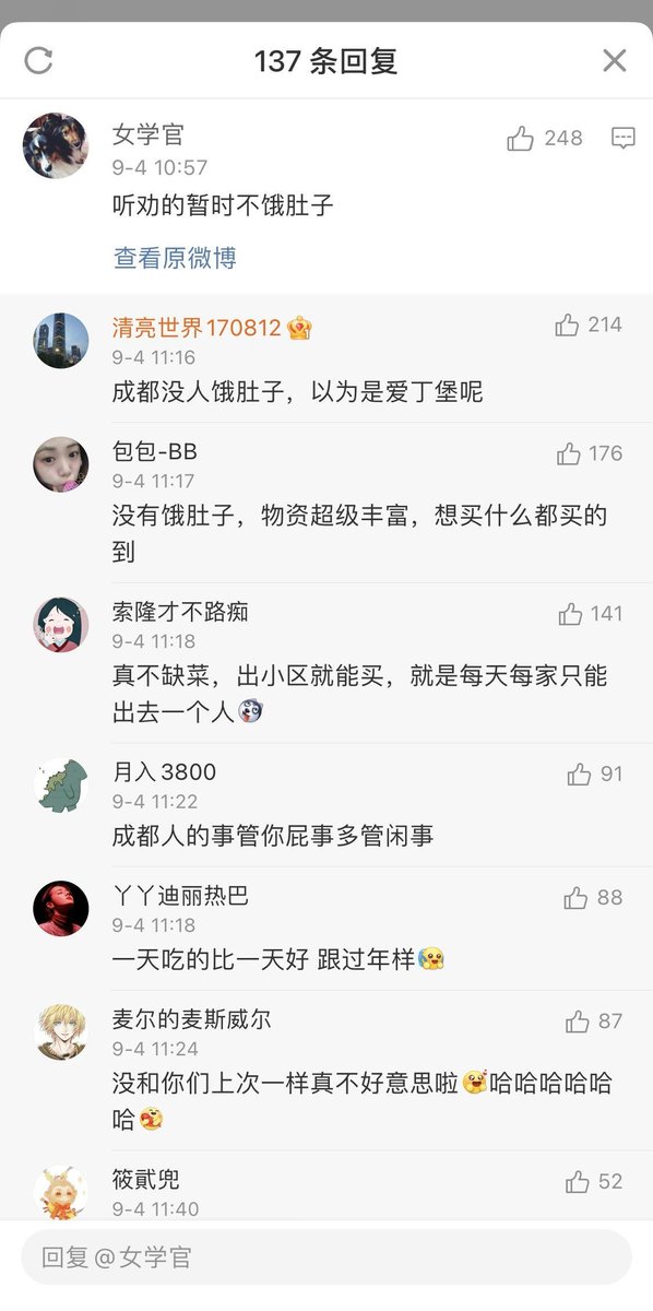 成都人回骂上海人:我们封控“就像过年一样”。看样子是该多封封了。