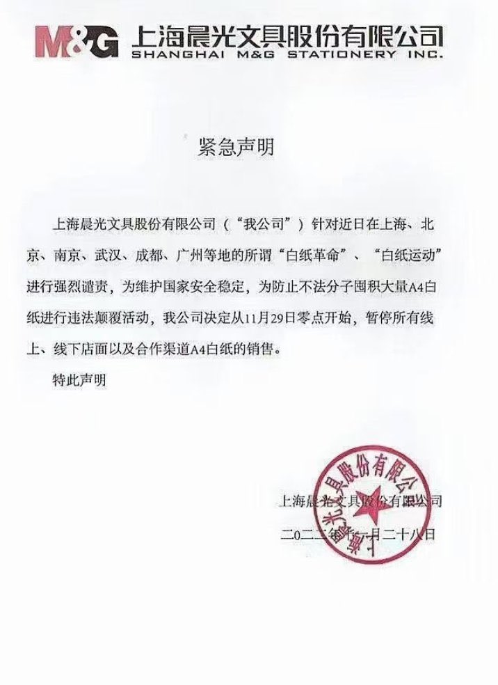 按常理这应该是恶搞的。不过上海能拆乌鲁木齐路路牌,也就可能禁止卖白纸,中国本来就是充满喜感的专制国家。为了防止白纸革命,建议每张纸都加编号,买纸实名。