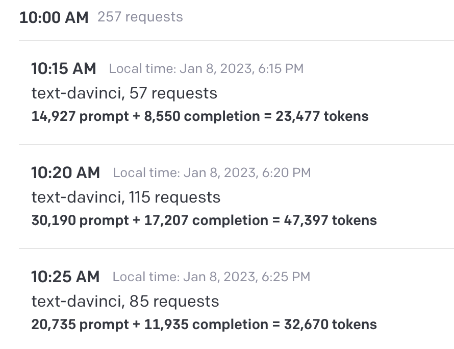 GPT-3 API 真是按分钟级别烧钱,1 分钟不到 1 美金,一天下来就是几千美金的账单,一般的创业团队还真的烧不起。可以理解 StockAI 为什么这么快就倒闭了,单个用户的付费根本支撑不起计算的成本。