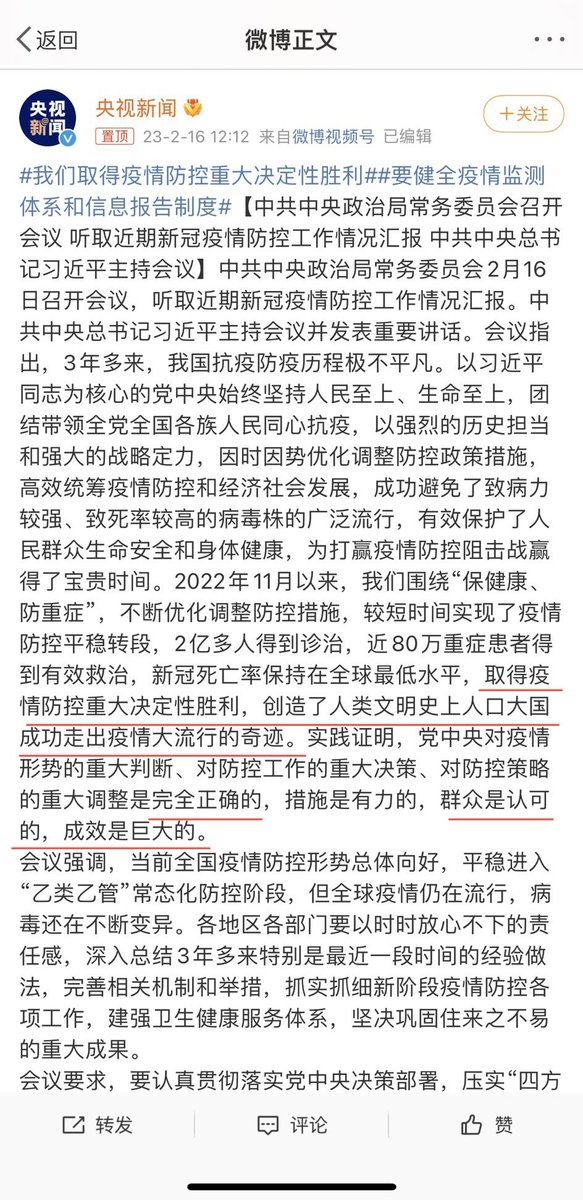 仅一个月就全国染疫,造成几百上千万人死亡的人间惨剧,竟然,在习猪头的眼中又是“重大决定性胜利”、“人类文明史的奇迹”…习猪头的思维绝不是一个正常人类的思维!对于这么一个冷血的疯子,美国人应该好好考虑下接下来该怎么应对
