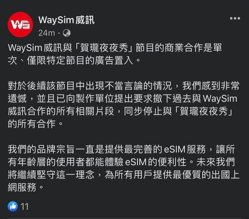 因为台湾贺珑夜夜秀播出王志安的节目中出现疑似嘲弄残疾人的内容,广告商纷纷撤下了广告。