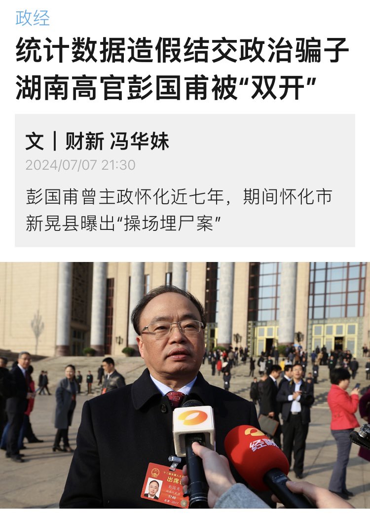 湖南人大常委会原副主任彭国甫近日被“双开”并移送司法机关,其遭指控的罪名包括:“捞取政治资本,政绩观扭曲,违规举债、虚假化债,大搞统计造假、数据造假,结交政治骗子”。除了“结交政治骗子”比较有意思之外,数据造假问题和地方债务问题也成了重要指控,这不摆明是抓替死鬼吗?