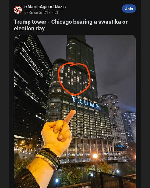 Reddit上的魔怔Antifa小将能从图里大楼的灯光看出“卍”字,试问美国进步人精神状态如何?