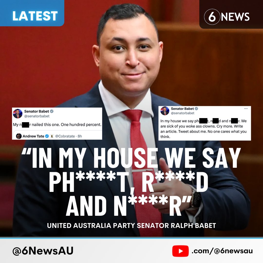 UAP senator Ralph Babet says he is “sick of woke ass clowns” and that in his house, “we say ph****t, r****d” and n****r”