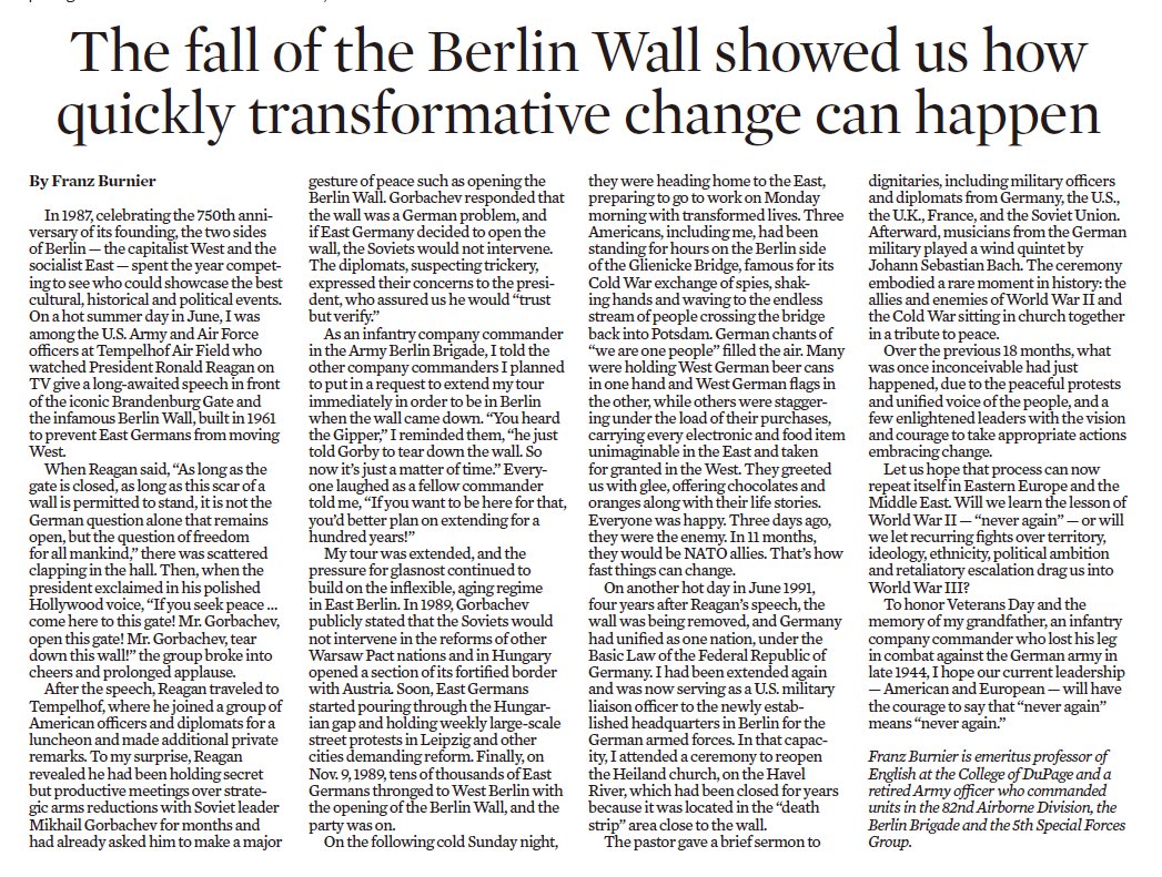 柏林墙倒掉是偶然事件,并不是突然事件。很多人分不清偶然跟突然的区别。苏东波剧变对许多人来说就像是突然发生的。