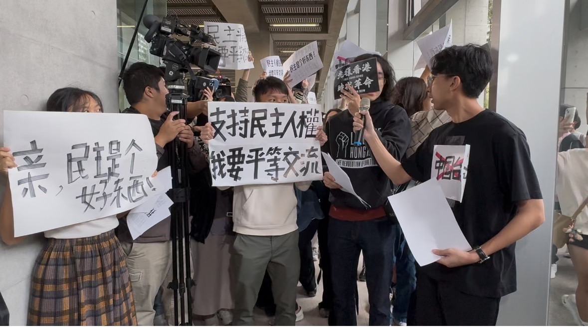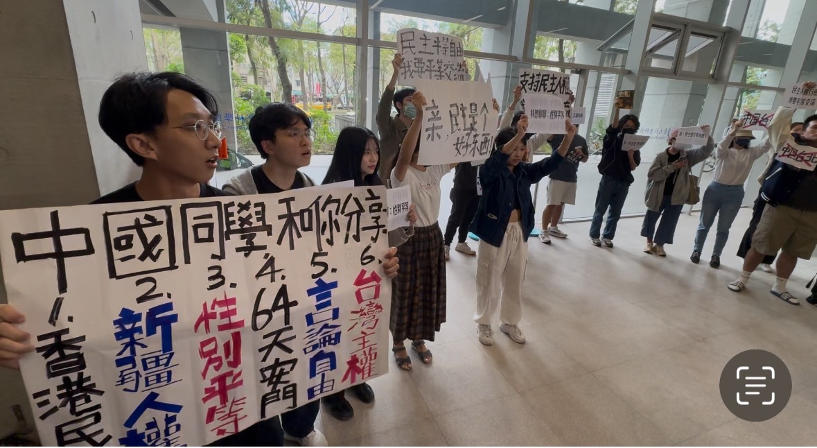 【马英九基金会邀中国大陆学生访台湾大学】【台大学生举“平反六四”“光复香港”标语抗议】