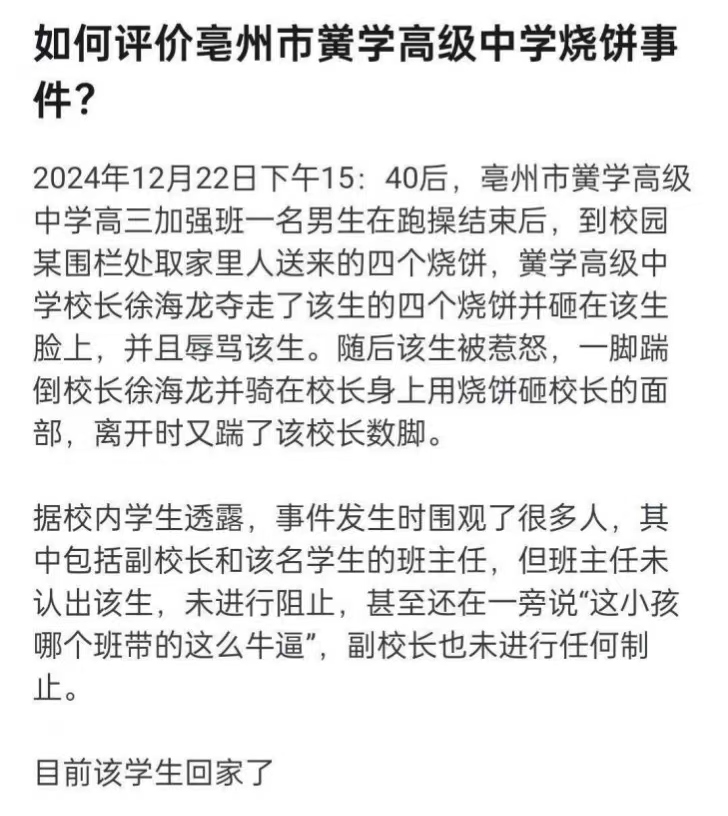 安徽,毫州。为烧饼打校长事件。