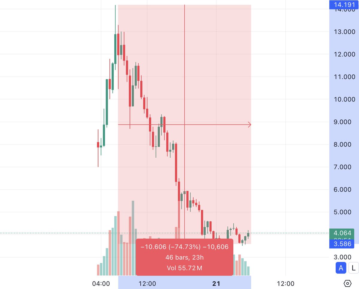 川普和他老婆发的币分别从高点大跌约60%和70%