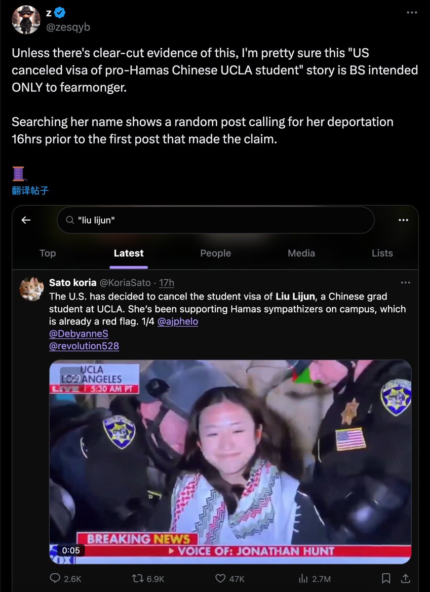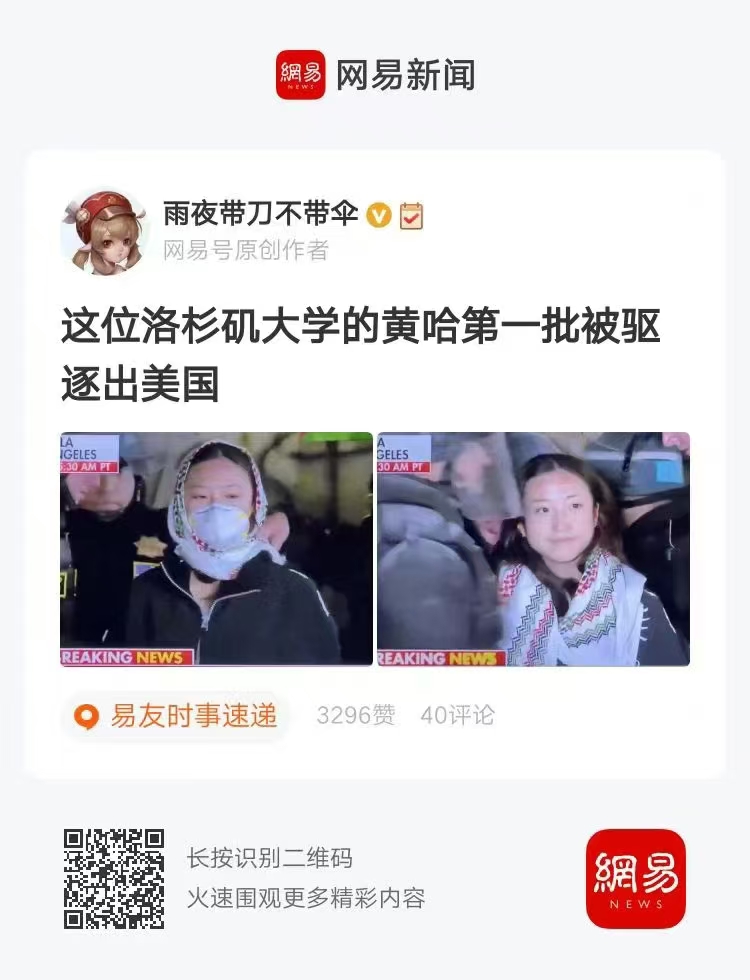 特朗普政府宣布取消所有参加支持巴勒斯坦/哈马斯运动的外国留学生的学生签证。网上传当年那个UCLA被抓的抗议女生被驱逐回中国。这个肯定是假的:1.她是美国人。2.她是韩国裔。