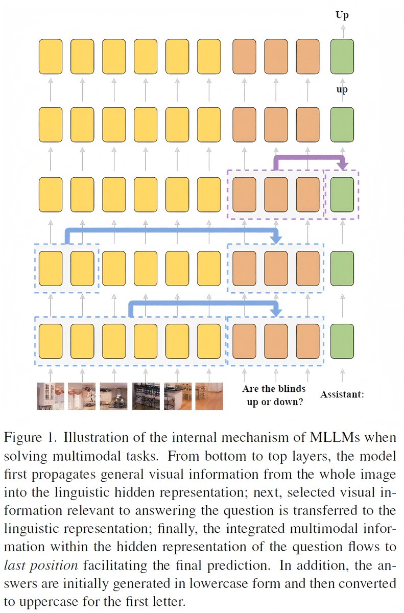 这篇文章研究了当前多模态大模型的内部工作原理, 包括不同模态信息在模型中的整合和方式和位置。