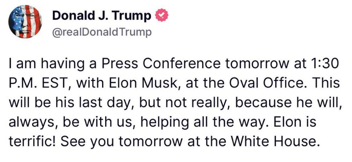 川普,还是特别在意马斯克的感受:明天中午,川普在白宫和马斯克一起举行新闻发布会,算是给马斯克体面的告别。政治就是这样,无论理想多么丰满,碰到现实的铁板,脚丫子肯定会痛。美国刚通过的法案,实际上并没大幅度砍掉政府支出,这让马斯克多少有些灰心丧气。中国赵宋王朝建国三十年,就已经机构的