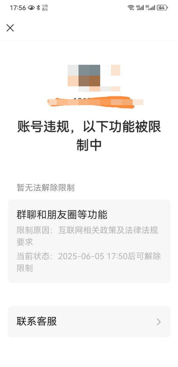 6月4日,有网友在微信朋友圈发了这三张日历的图片,结果朋友圈和群聊被封号,禁止使用到明天。