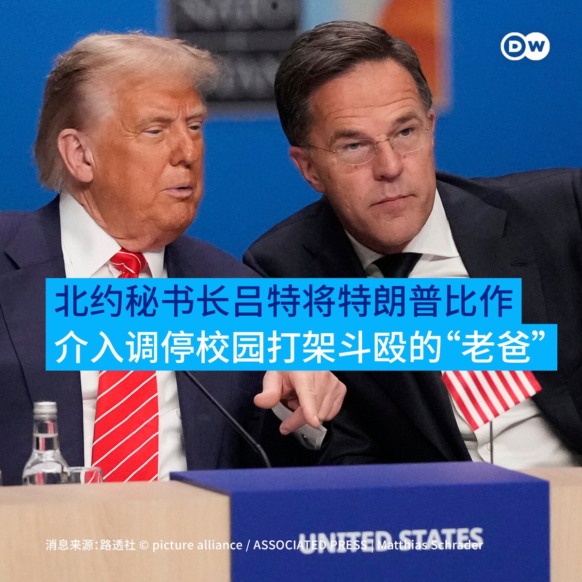 据路透社报道,北约秘书长吕特周三将🇺🇸美国总统特朗普比作在校园打架中介入调停的“老爸”。