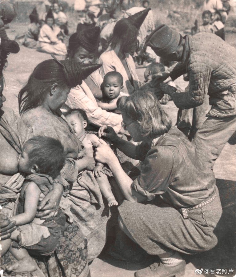 1931年,云南,苗族。美国基督教会为苗族儿童接种疫苗。苗族宝宝健康漂亮。