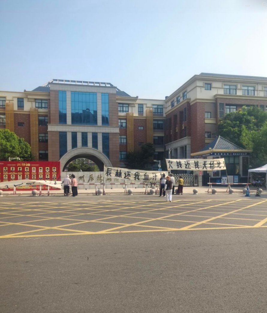 7月19日,河南,郑州,辰林高中,学校门口有人举横幅要求还钱。