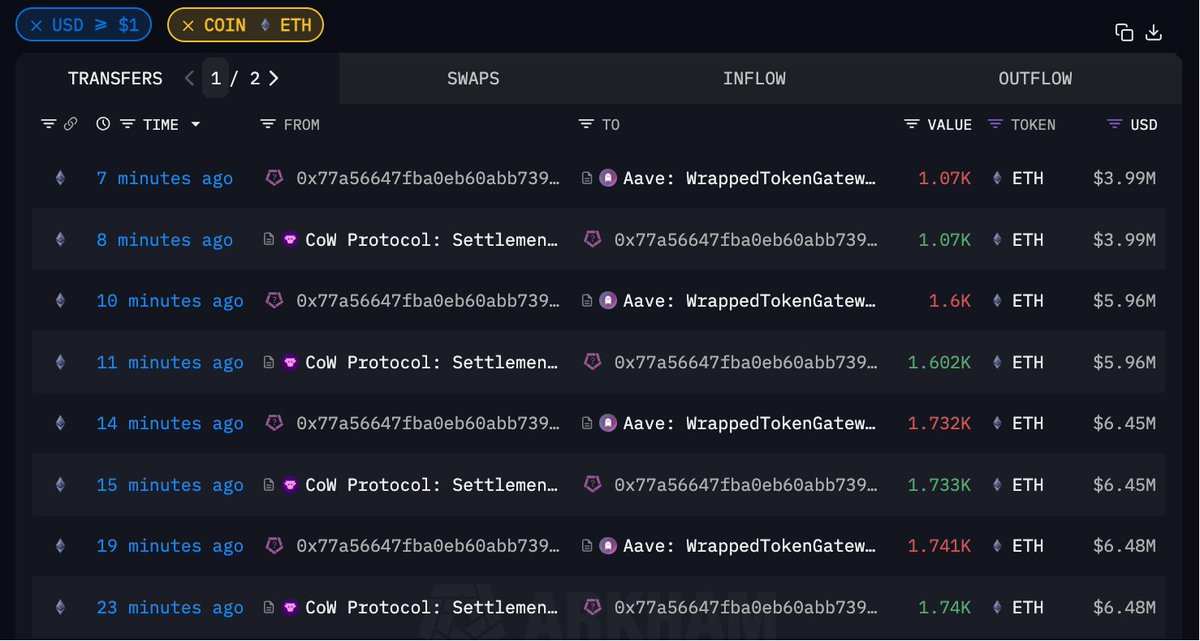 更新:还在买!🤨WLFI 关联地址 0x77a...F94F6 过去 20 分钟累计花费 2300 USDC 买入 6144.97 ETH至此,过去六天三个 WLFI 累计买入的 ETH 总额增长至 10,013.54 枚(约 3598 万美元),均价 $3593