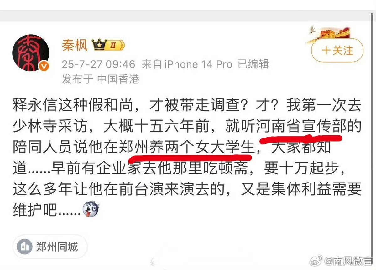 什么佛性 悟性 抵不住人性,所有的谣言都是遥遥领先的预言!网友评论:我惊讶的不是释永信被查,而是现在才被查!!