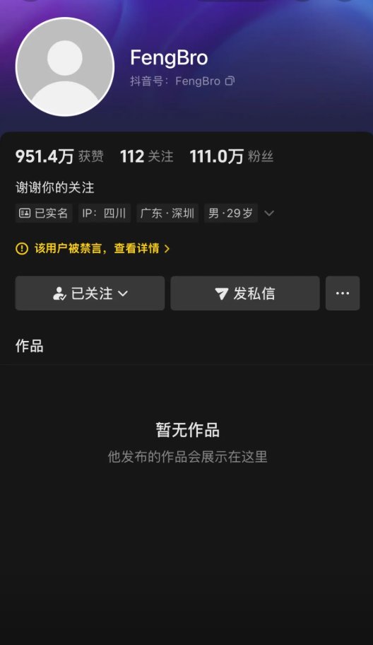 7月27日,峰哥亡命天涯的抖音账号显示被禁言。