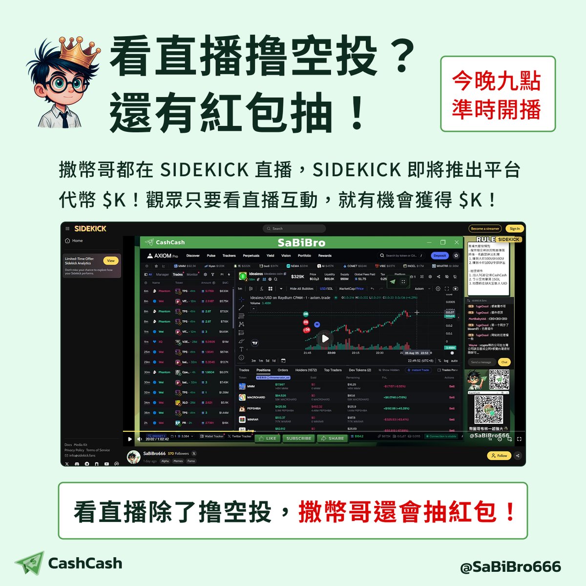 相信老觀眾們都知道 在 Sidekick 平台上直播吧! 最近宣布將推出代幣 $K,觀眾通過看直播、互動就有機會獲得 $K!看撒幣哥的直播除了有機會領空投外,撒幣哥還會抽紅包給觀眾🧧這麼多好康!記得今天晚上九點來撒幣哥在 Sidekick 的直播間集合🔥