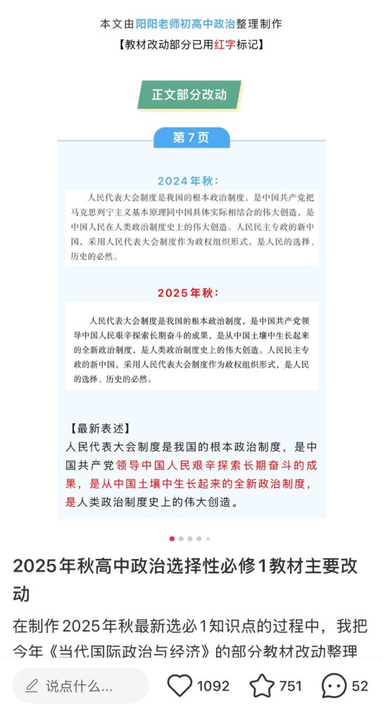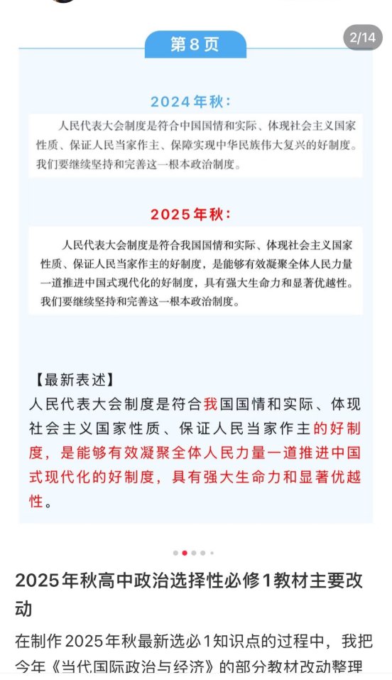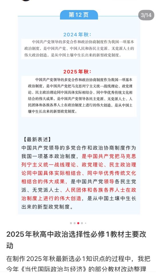 8月14日,有博主公布,最新版的高中政治教材有多处修订,强化了对中国共产党的描述。