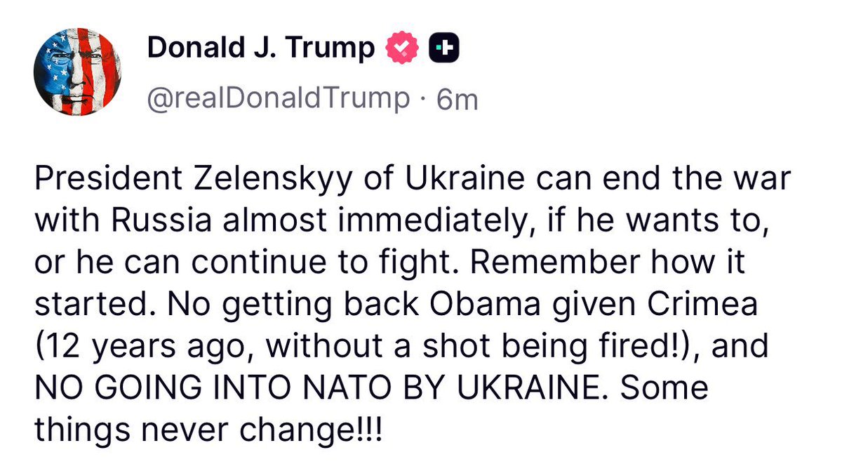 既要做普京的婊子,又要乌克兰和欧洲给他立牌坊,我啐!在泽连斯基飞来美国之际,特朗普发表声明说:“泽连斯基如果愿意,可以立刻结束与俄罗斯的战争,或者继续战斗。记住这场冲突是如何开始的。奥巴马当年把克里米亚“拱手让出”,已无可挽回,而乌克兰绝不能加入北约。有些事情永远不会改变!!!