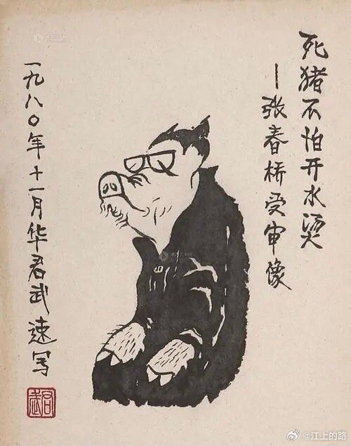 1.张春桥在法庭上。1980年11月25日。 (Photo by: Sovfoto/Universal Images Group via Getty Images)2.华君武的一幅漫画