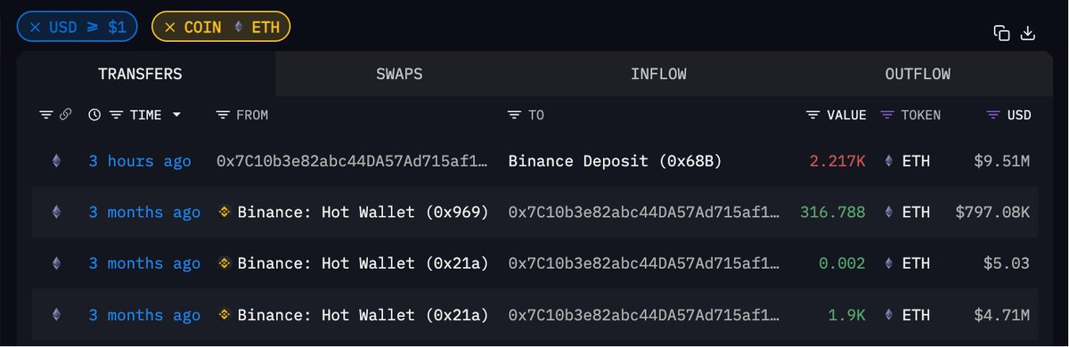 三个月赚 400 万刀,还是赚趋势的钱舒服啊😌地址 0x7C1...36FA7 六月初以 $2484 从 #Binance 提出 2216.79 ETH,持仓三个月不曾有过任何操作,直到三小时前全部充值进币安,若卖出将回报率 73%钱包地址本文由 #Gate 大门交易所 | 赞助