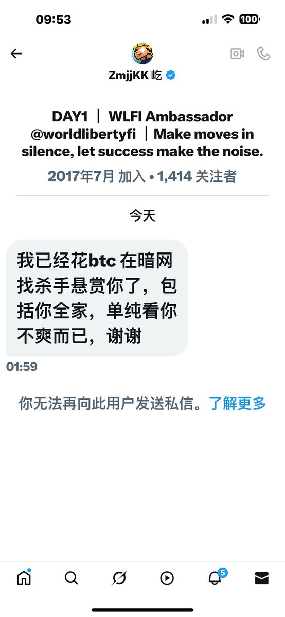 愿意帮忙的朋友请帮忙举报一下这个对我发出死亡威胁的账号。谢谢🙏🌹