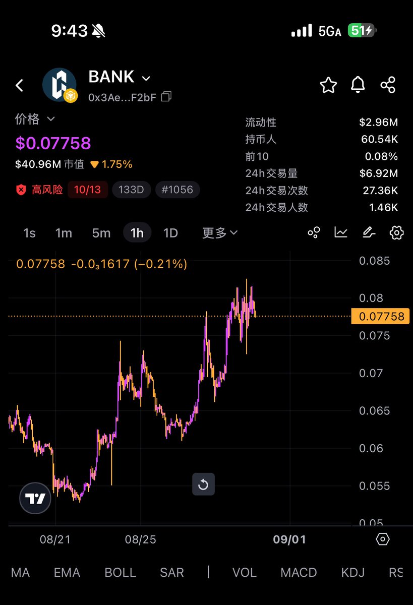 在@BNBCHAINZH 的USD1 概念币里, $Bank 过去这段时间的表现是最好的,不声不响一步一步往上走。