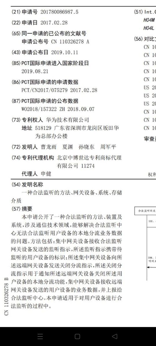 网友投稿:华为早在2021年就申请了一项监听专利。方法包括:集中网关设备接收合法监听网关的监听指示,携带待监听用户设备标识;集中网关设备通知远端网关设备关闭用户设备的本地分流功能,接收其业务数据并上报给合法监听中心。