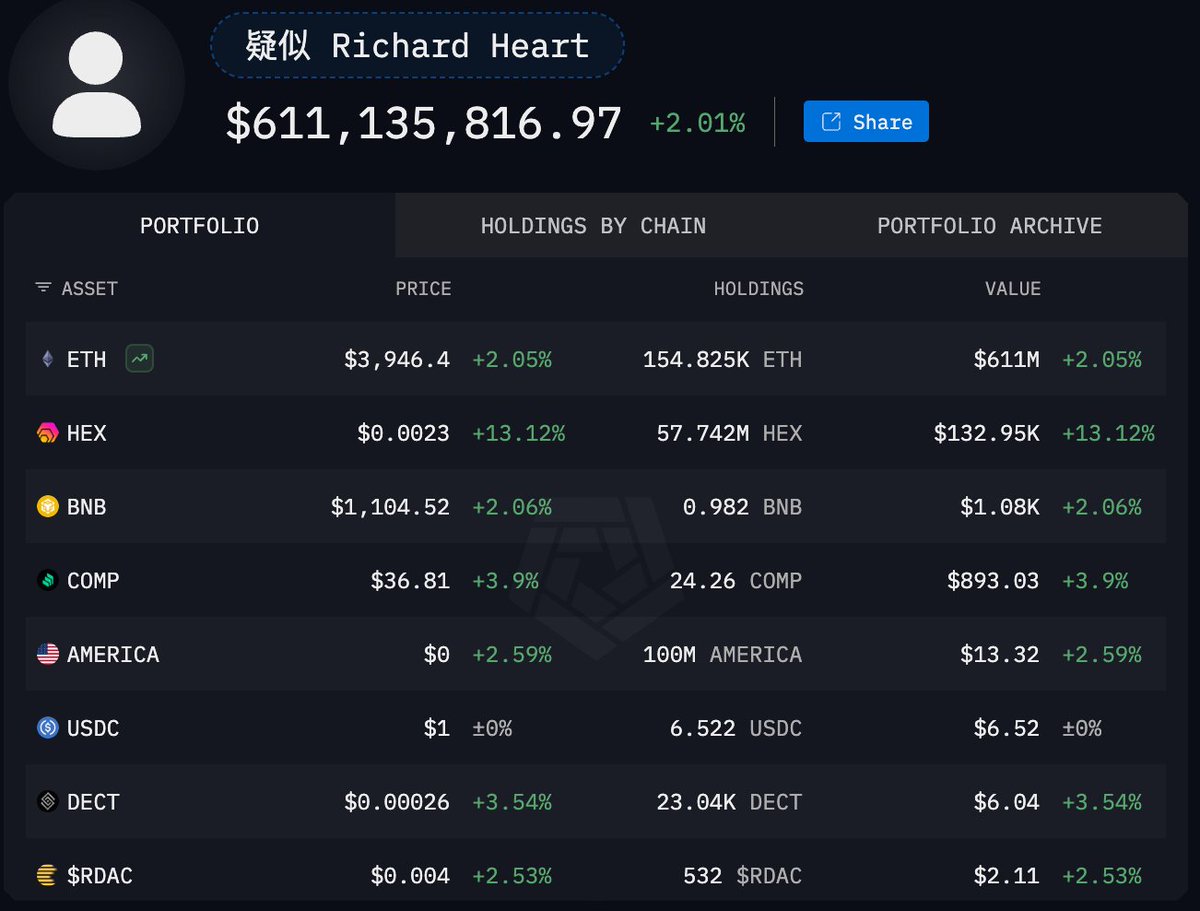 沉睡两年的 Richard Heart 关联地址(HEX 与 PulseChain 创始人)正在疯狂整理钱包,过去 1 小时再次将 $ETH 分发至 10 个新地址 目前他在链上共计持有 154825 ETH,平均成本 $$3,779,总价值 6.11 亿美元,当前浮盈 2579 万美元,暂时不确定本次转移代币和分仓的意图 钱包地址比较多,都整理在这里了 👉 https://t.co/ugQjOgafEJ 本文由 #Gate 大门交易所 | @Gate_zh 赞助