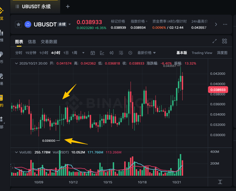 他们的市值管理做的相当稳健。可以回去看看1011大灾难当晚的K线, $UB 应该是少有的山寨币里接近免疫的标的,价格稳稳的控在了0.029-0.035之间。